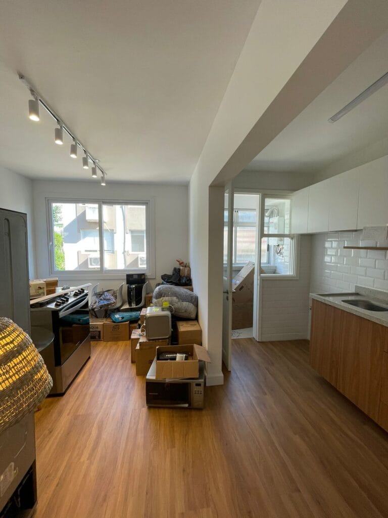Este imóvel passou por um retrofit total. Com o objetivo de valorização para potencializar a venda, o proprietário optou pela modernização do apartamento, ampliando os ambientes com a demolição de paredes e realizando a troca de todos os revestimentos.