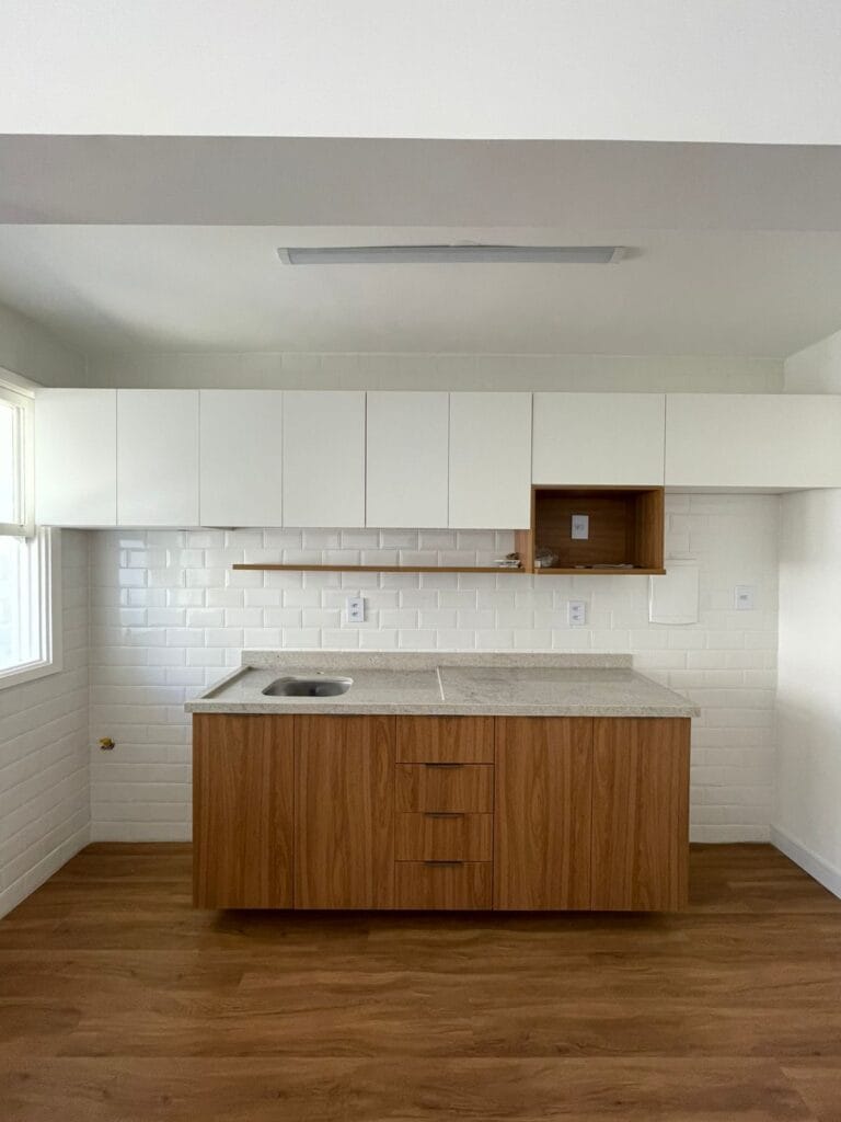 Principais serviços executados: demolição, instalações elétricas e hidrossanitárias, pinturas, revestimentos cerâmicos, impermeabilização, instalação de piso vinílico, instalação de rodapés e forro de gesso.