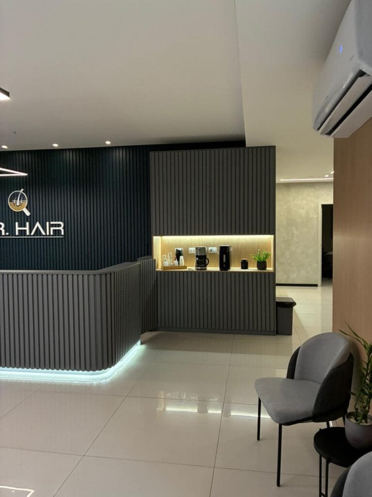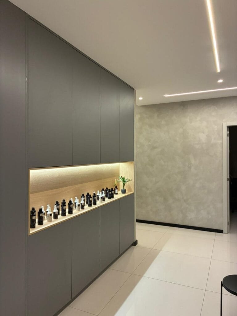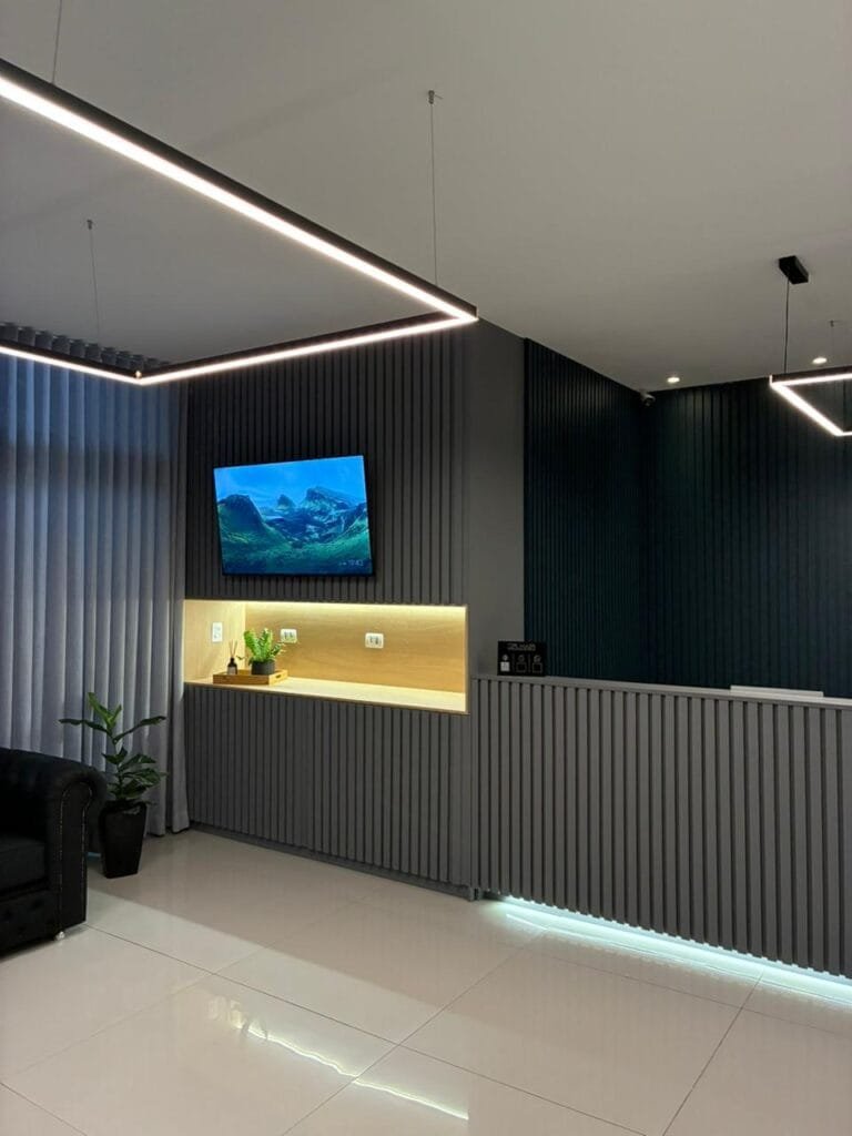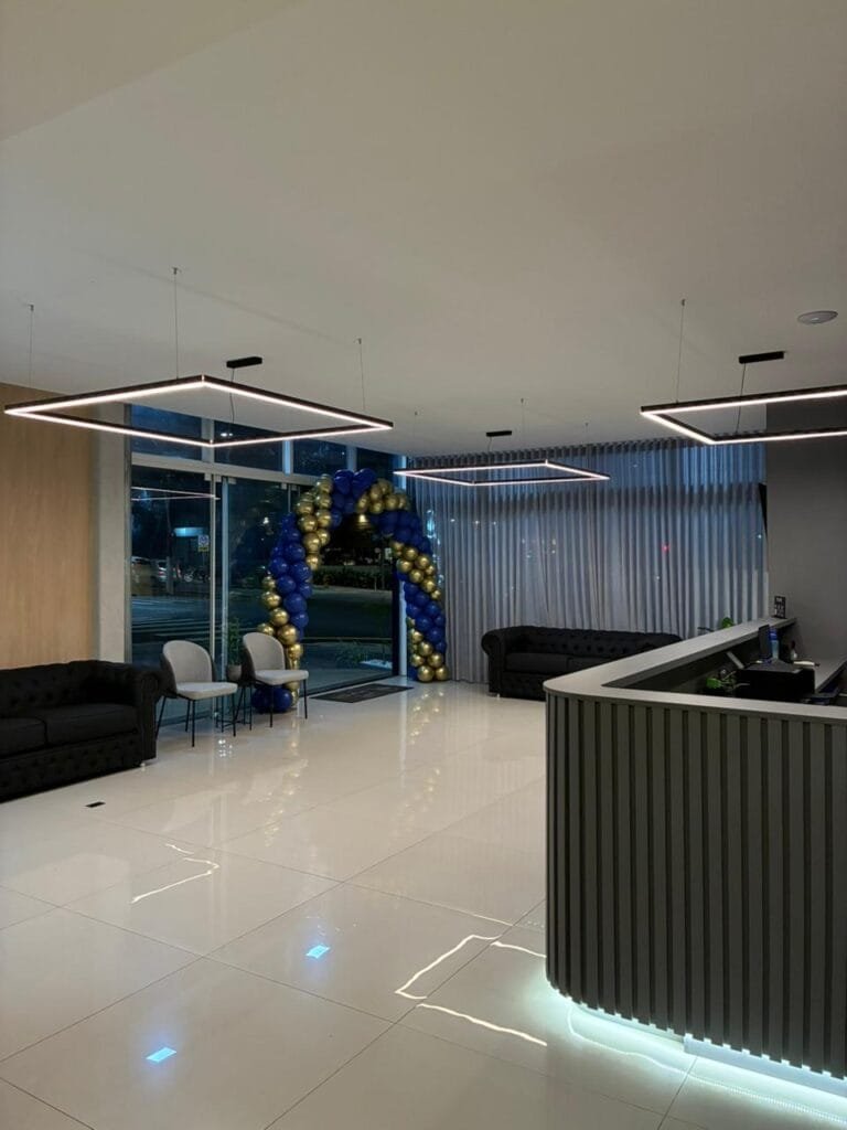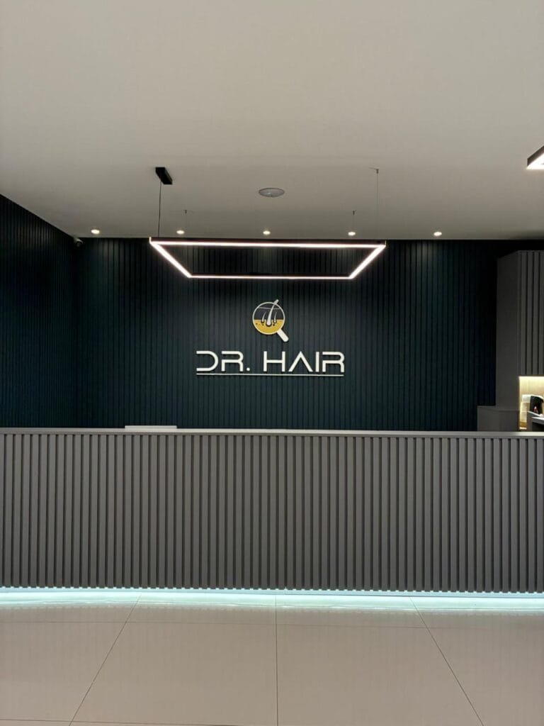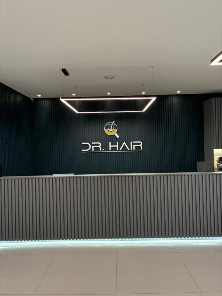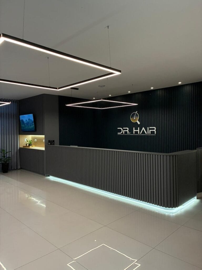 A loja foi projetada para atender às especificidades do Dr. Hair e foi um projeto que exigiu agilidade. Com um prazo desafiador de 35 dias, a construção foi realizada de forma eficiente e no tempo estipulado, garantindo a entrega de um espaço moderno e funcional para a operação da marca.
